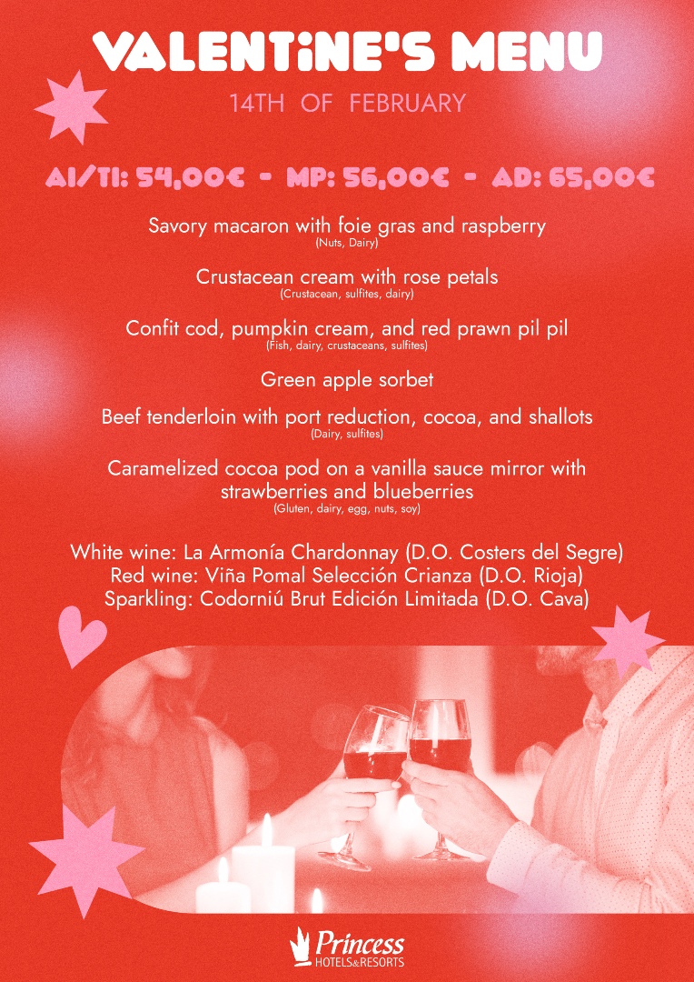 From February 10th to 14th, enjoy our special dinner menu, a selection of signature cocktails at our bars, and cava and champagne packs with chocolates, perfect for a romantic occasion.